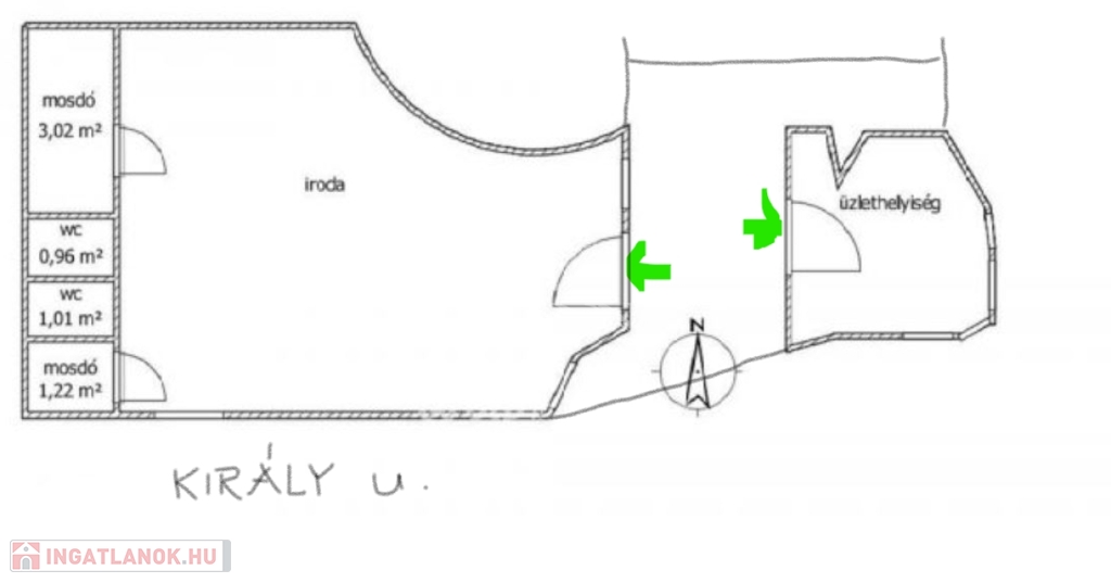 Pécs belvárosában, a Király utca végén, exponált helyen kiadó egy földszinti, utcafronti, 2 egységes iroda.