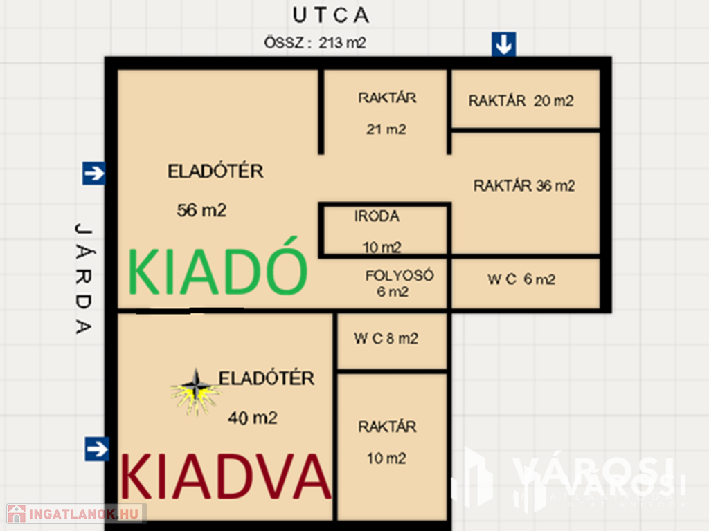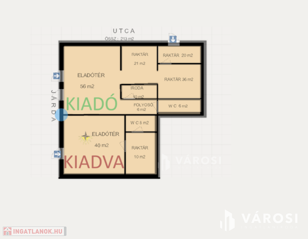 Szentes belvárosában kínálom kiadásra ezt a 160 m2-es üzlethelyiséget, ami kiváló állapotú, felújított. Az alaprajzon 213 m2 szerepel, ebből már ki lett adva 60 m2, ami gipszkartonnal elválasztásra kerül. A szolgáltatók mérőórái külön mérik a fogyasztást az adott üzletre. A nagyobb üzletnek 2 bajárata van. A biztonságról riasztó és kamera gondoskodik. A burkolat hidegburkolatú.