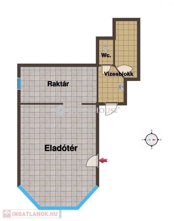 Előnyök: 32 m²-es, praktikus elrendezés Földszinti, utcafronti üvegportál