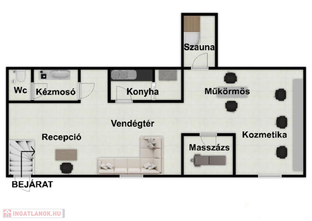 A mostani kialakítása egy kisebb méretű szépségszalon:
