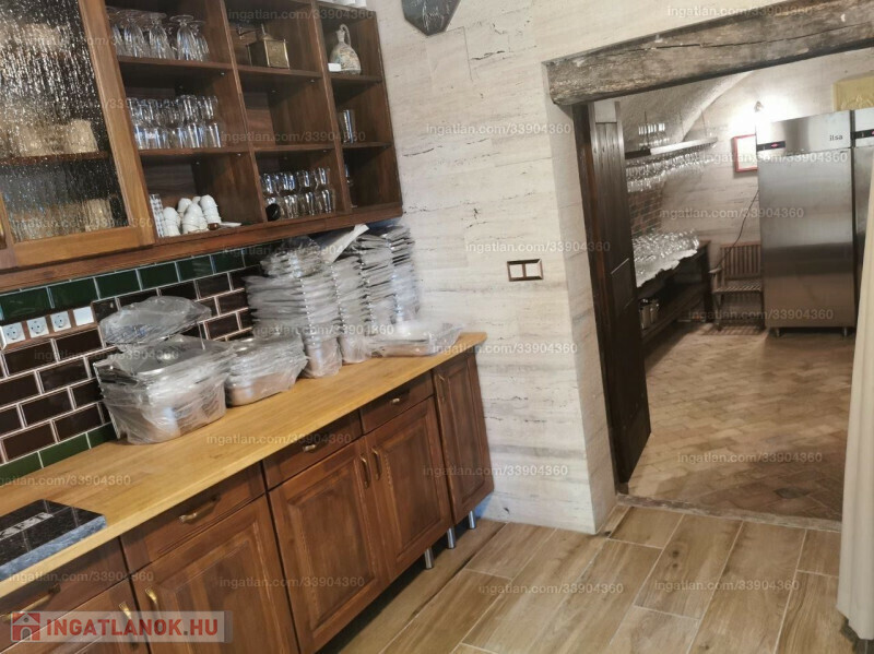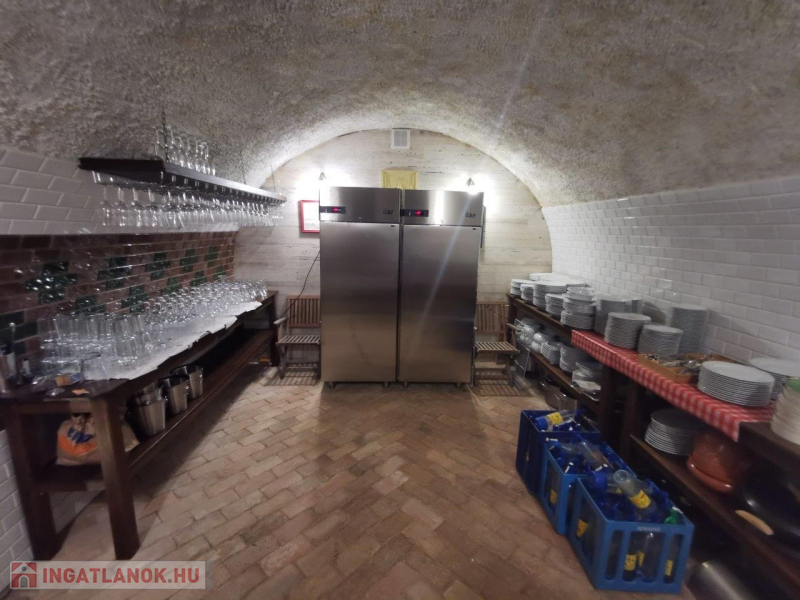 A 64,5 m2 alapterületű, boltíves pincén kívül az épület ezen szárnyában kialakításra került egy tálaló, egy mosogató rész, valamint egy WC.
