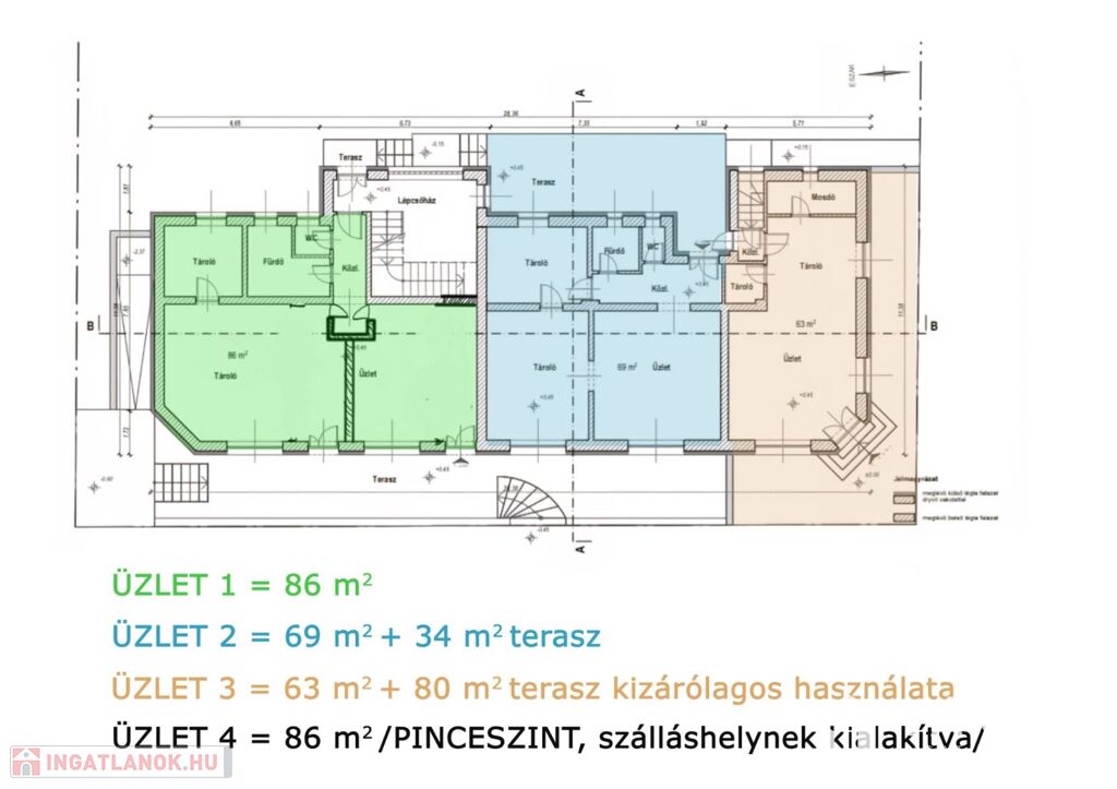 - Pince = 86 m2 üzlethelyiség (szálláshelynek kialakítva)