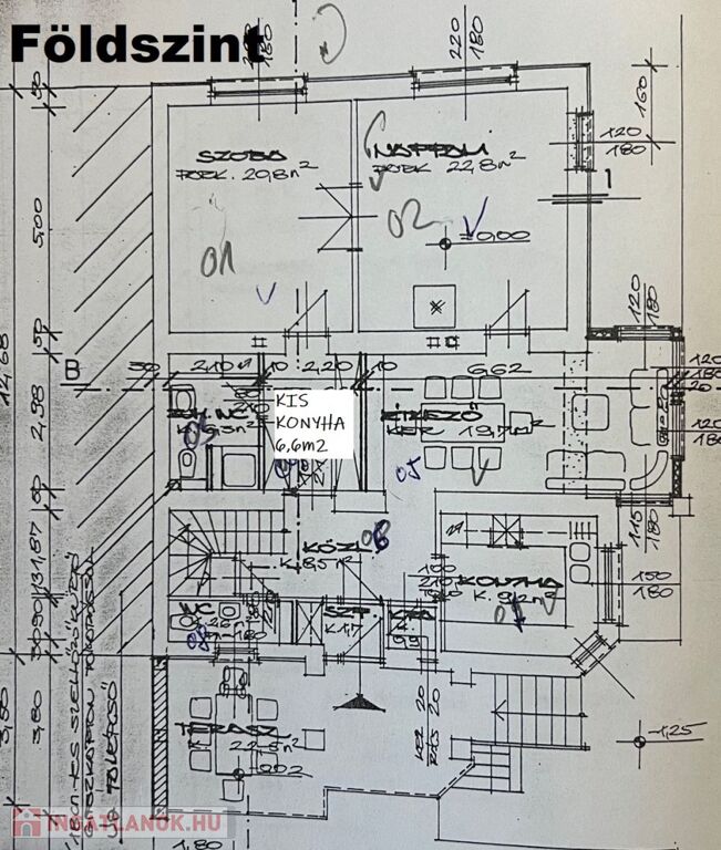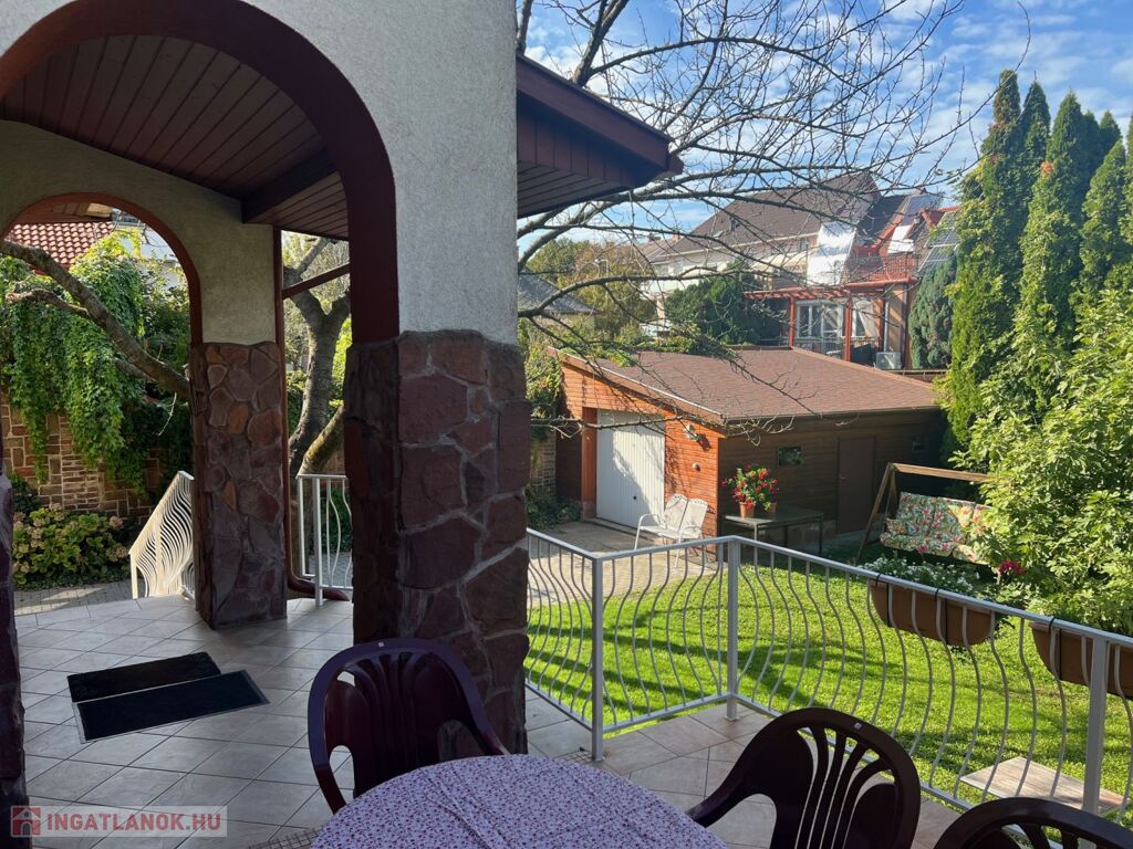 Az épület földszinti (magasföldszinti), kert felé néző, hangulatos teraszára, 9 lépcsőn keresztül érkezünk.