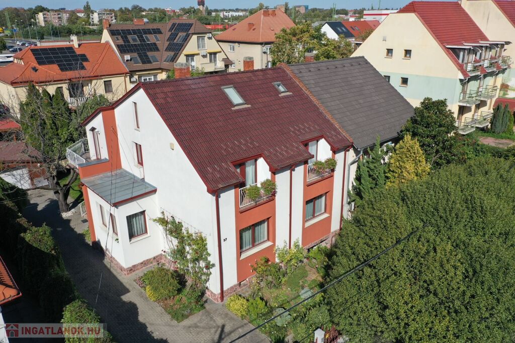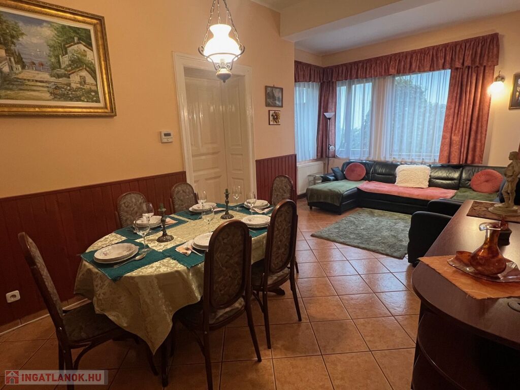 Győr-Nádorváros, klasszikus, belvároshoz közeli részén, 540 m2-es telken elhelyezkedő, nagypolgári hangulatú, 204 m2-es, tágas, napfényes lakóterületű (pincével, garázzsal együtt 410 m2), nappali + 7 szobás, pincével, garázzsal rendelkező IRODAHÁZNAK ALKALMAS lakóház eladó.