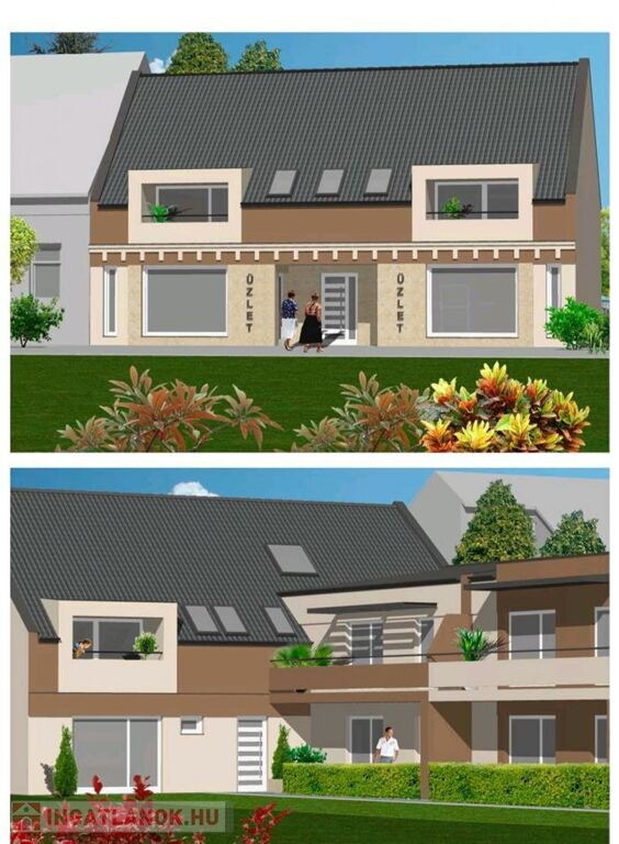 Jánossomorja központi részén épülő társasház utcafronti részén eladó egy 46m2 es üzlethelyiség amely az alábbi helyiségekből tevődik össze.