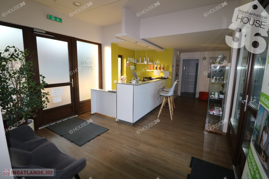 Az ingatlan 679 m2-es telekterülettel, első emeleti 2 szoba+nappalis, teraszos, modern lakással és nagyméretű, földszinti üzlethelyiségekkel alkot egyben egy egységet. A wellness stúdióként üzemelő ingatlan jellemzői: térkövezett utcai parkolók, parkosított és térkövezett udvar garázzsal, fedett kocsibeálló, külső független lakásbejárat, 3 fürdőszoba, több WC és mosdó, fitness terem, riasztó, klímaberendezések, gáz (cirkó) padlófűtés rendszer stb.