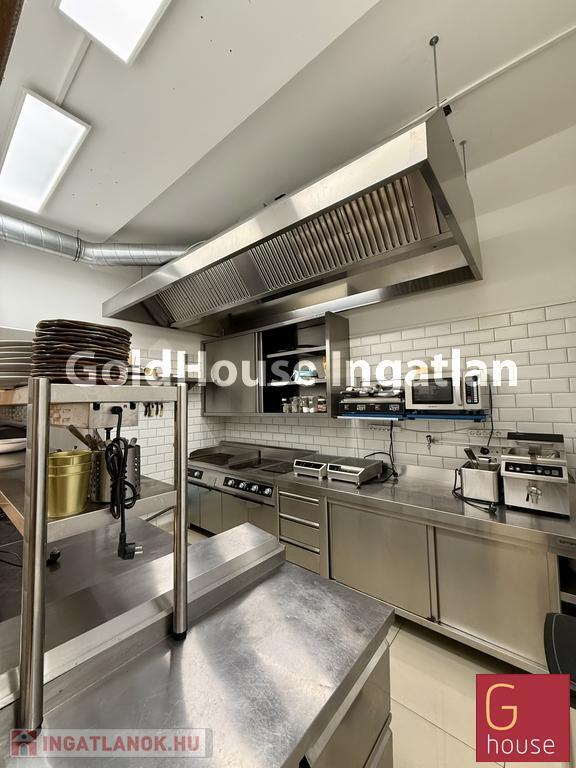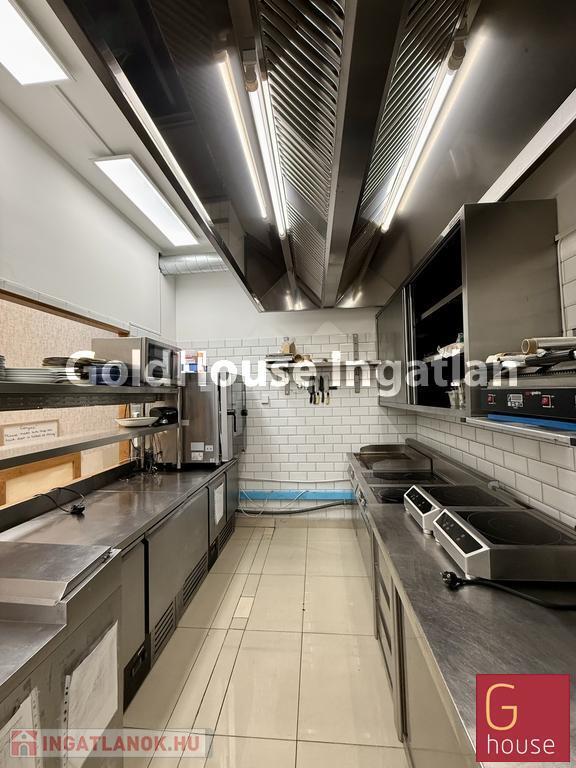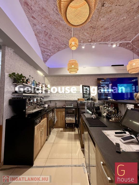 A vendégtér impozáns boltíves mennyezettel, elegáns hangulatvilágítással és igényes belső kialakítással fogadja a vendégeket, amely különleges atmoszférát teremt a vendéglátás számára. A hely teljes bárpulttal, professzionális konyhatechnológiával, elszívó rendszerrel és komplett vendéglátóipari gépparkkal felszerelt, így azonnali üzemeltetésre alkalmas állapotban kerül átadásra.