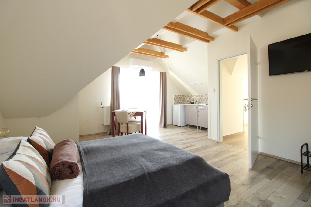Összesen 9 apartman található az épületben, az egyik önálló bejárattal és teljesen akadálymentesített kiépítéssel.