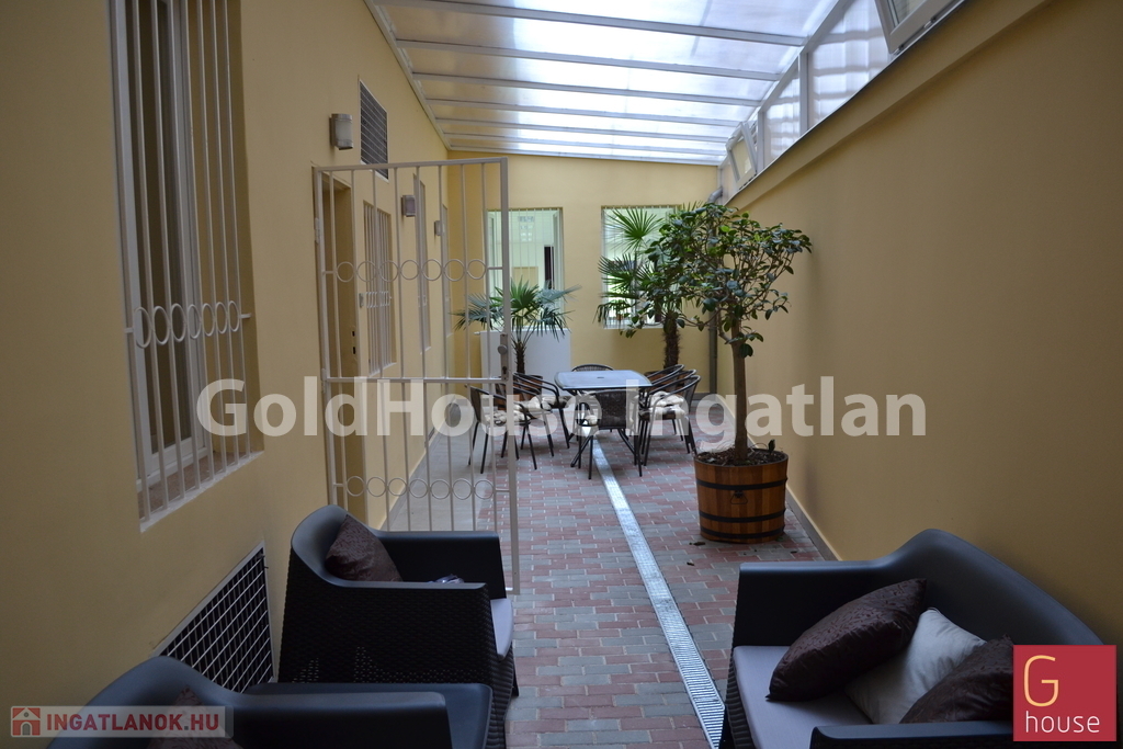 Tágas vendégtér, különtermek, könyvtárszoba látványkandallóval. Vendéglátás esetén a terület tovább bővíthető. Teraszozható. Saját zárt 45 nm-es privát terasszal és udvari bejárattal is rendelkezik.