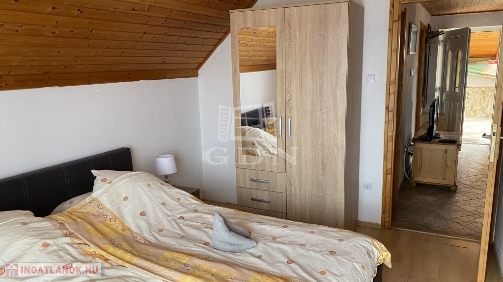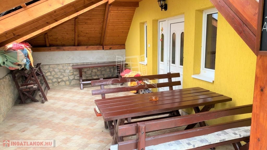 A telek 2350 m2, melyen szőlő és gyümölcsös gazdagítja a domboldal hangulatát.
