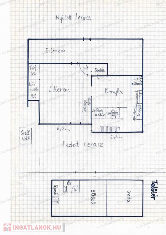 - 357 m2-es területen, 250 nm-es étterem, helyiségei: első terasz, zárt tér, konyhával, kiszolgáló helyiségekkel, hátsó terasz strandkapcsolattal, a tetőtérben iroda (vagy öltöző), szoba, fürdőszoba zuhanyzóval és WC-vel