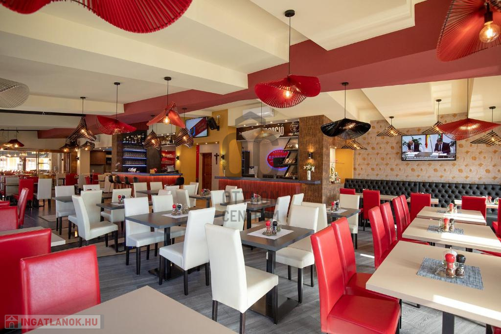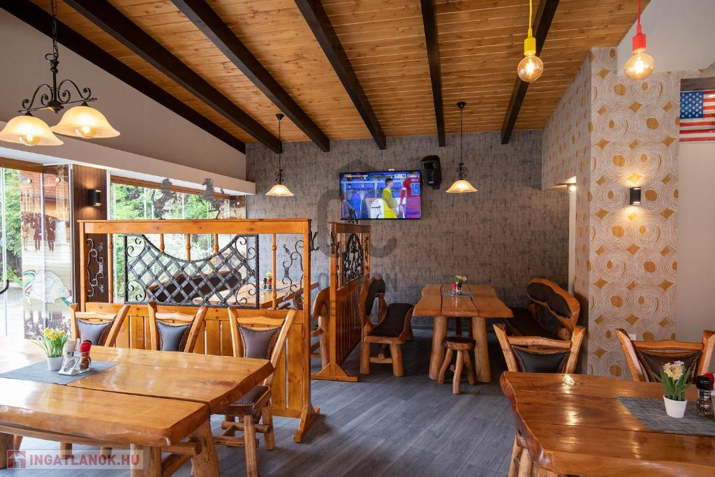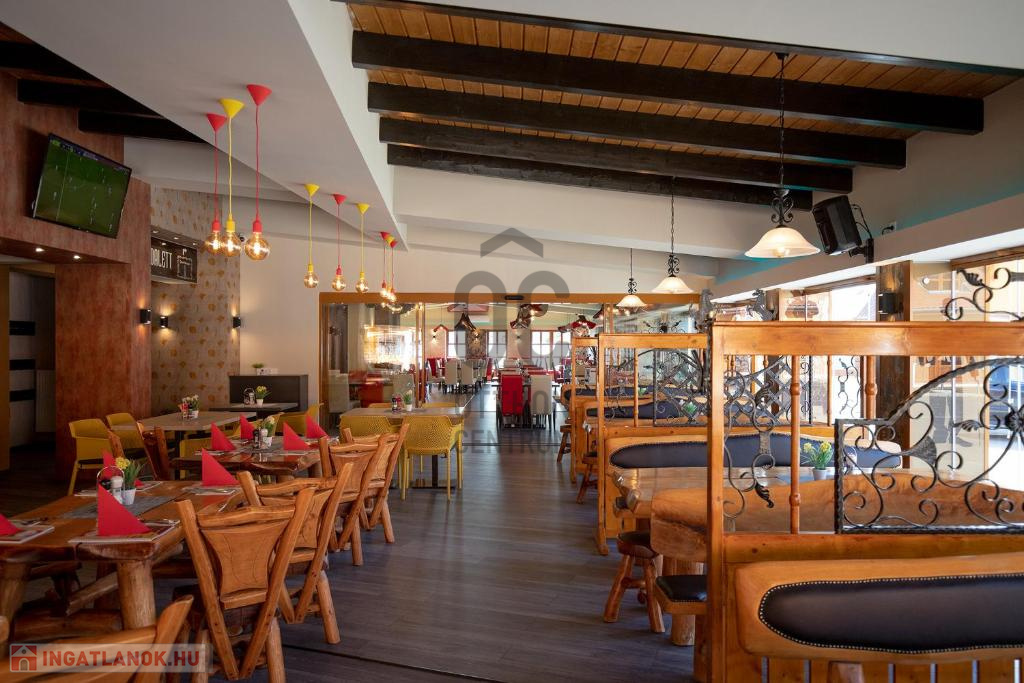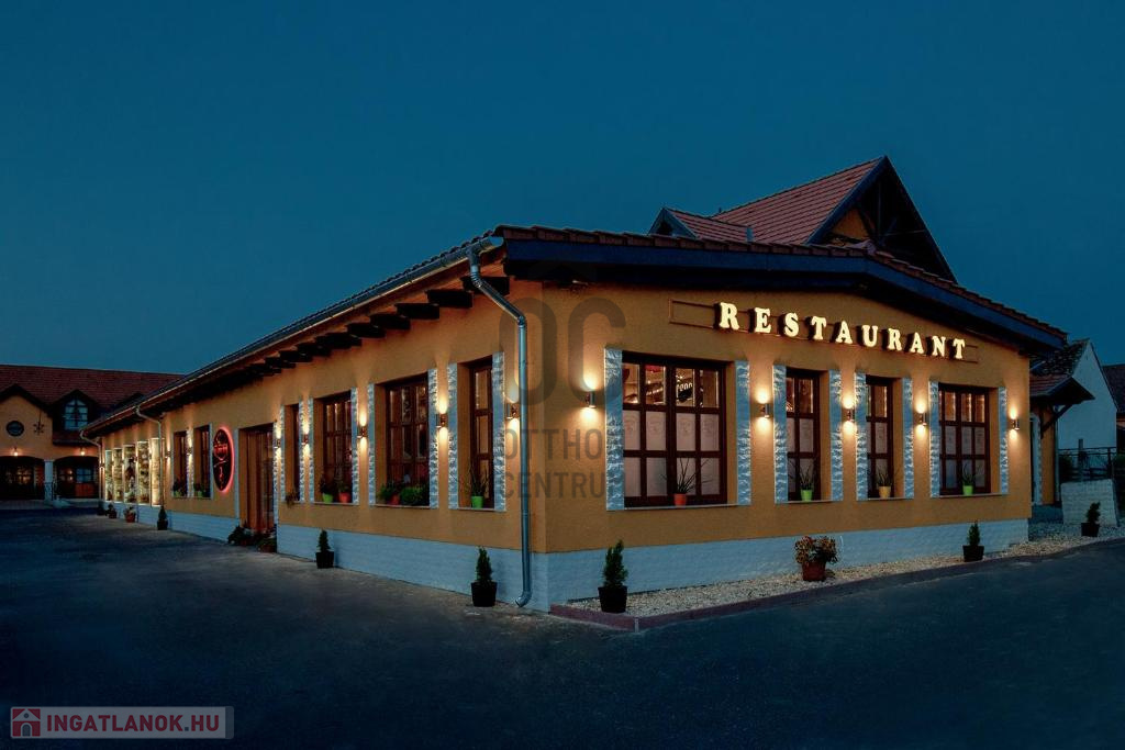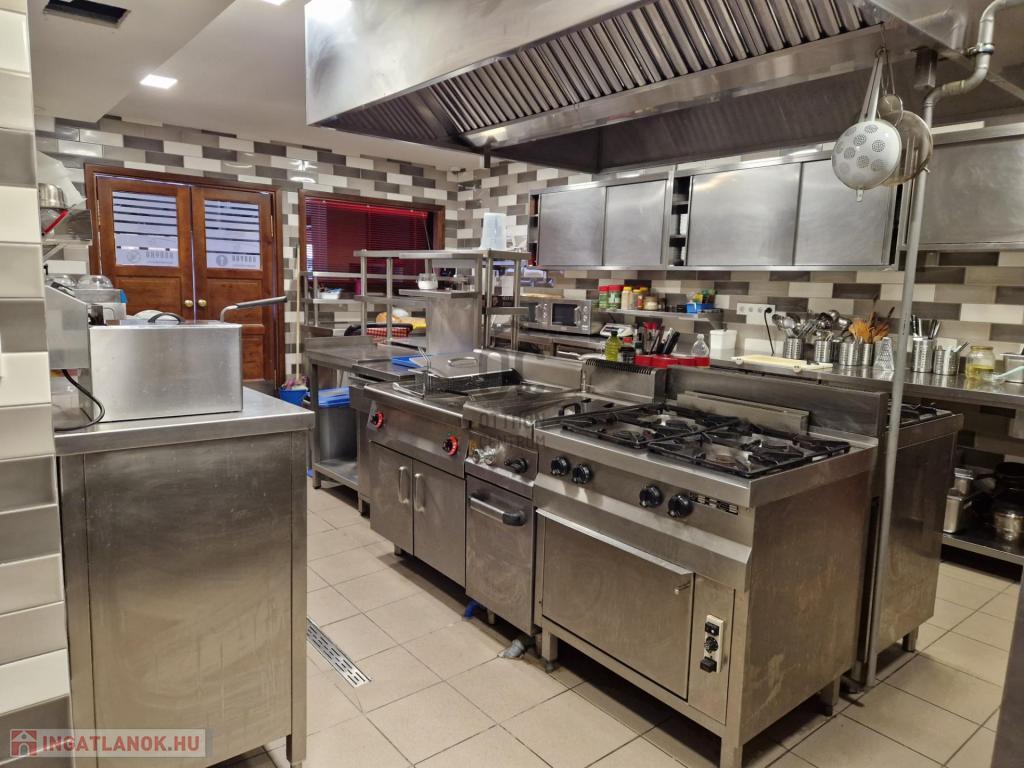 Az ingatlanhoz tartozik két meleg konyhás korszerűen felszerelt, gépiesített, engedéllyel bíró étteremmel is. A vendéglő rendelkezik az összes ÁNTSZ előírásnak megfelelő előkészítőkkel, mosogató helyiségekkel, raktárakkal, tálalóval, főzőhelységgel. A vendéglő rendelkezik egy 200 fő befogadására alkalmas belsőhelységgel valamint egy fedett, nagy fűthető terasszal, mely téliesíthető a szigetelt egymásba lapozható üvegfalak által. Egyedi dizájn és kivitelezés, hangulatvilágítás gondoskodik az esztétikai megjelenésről.