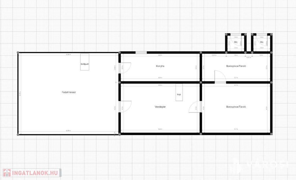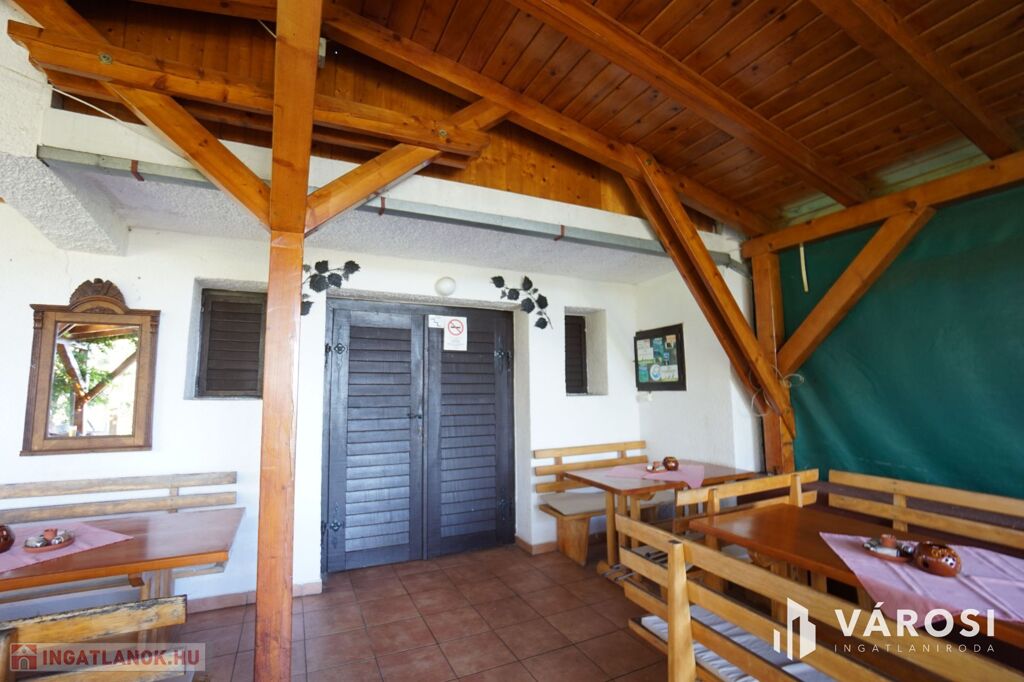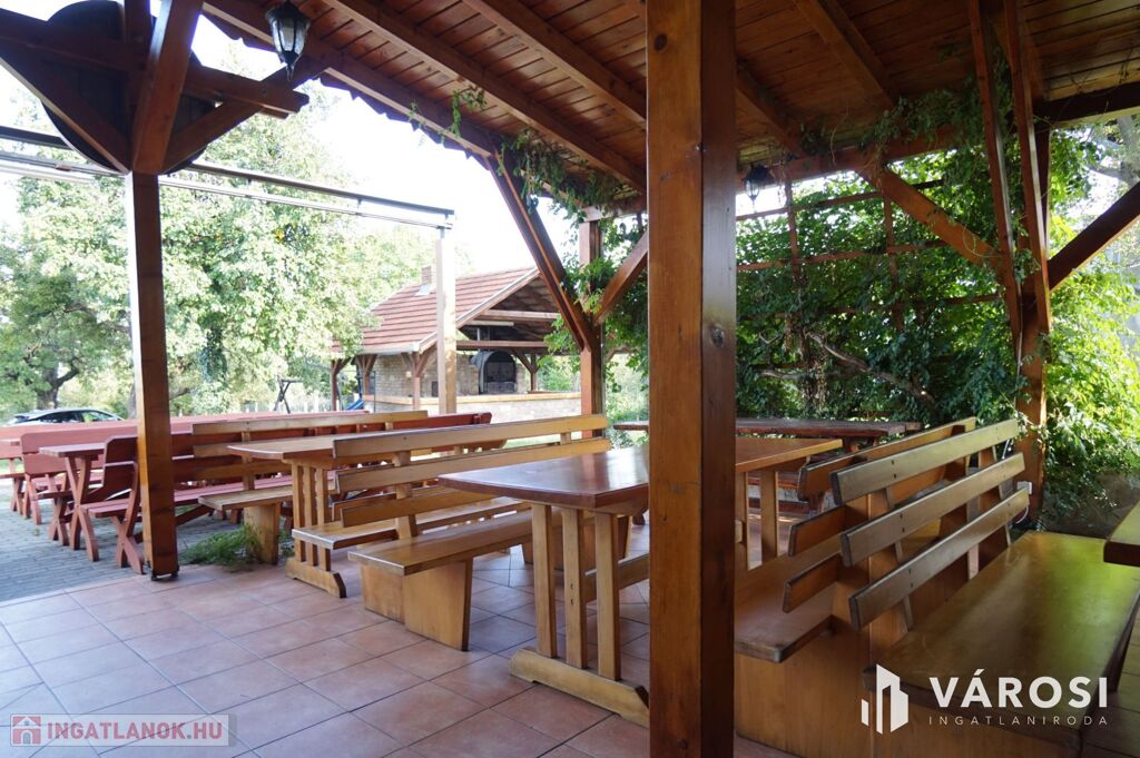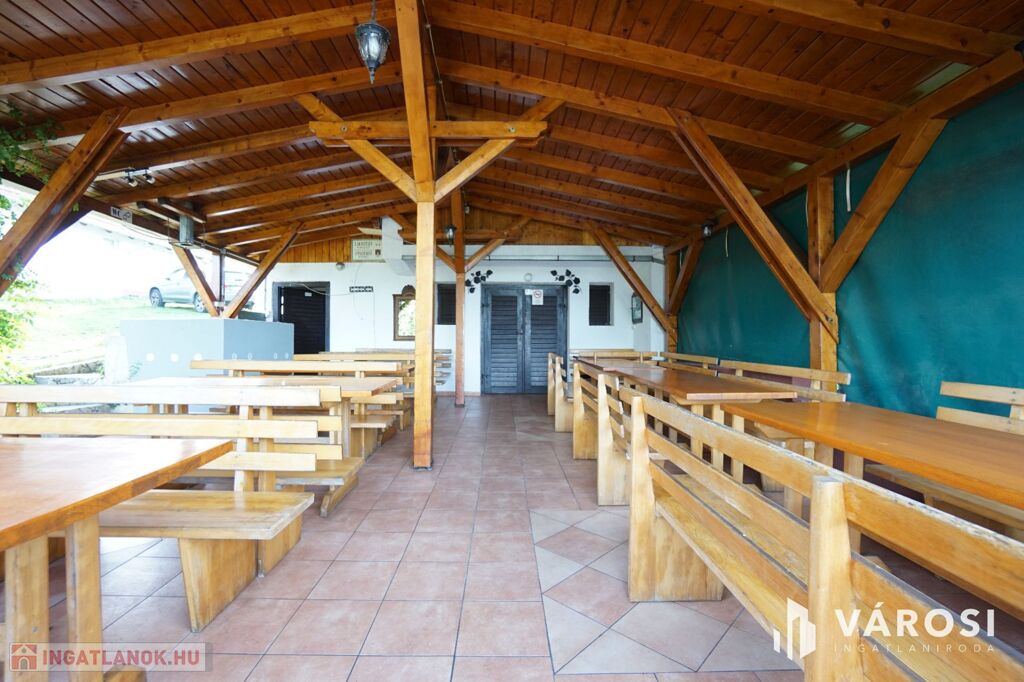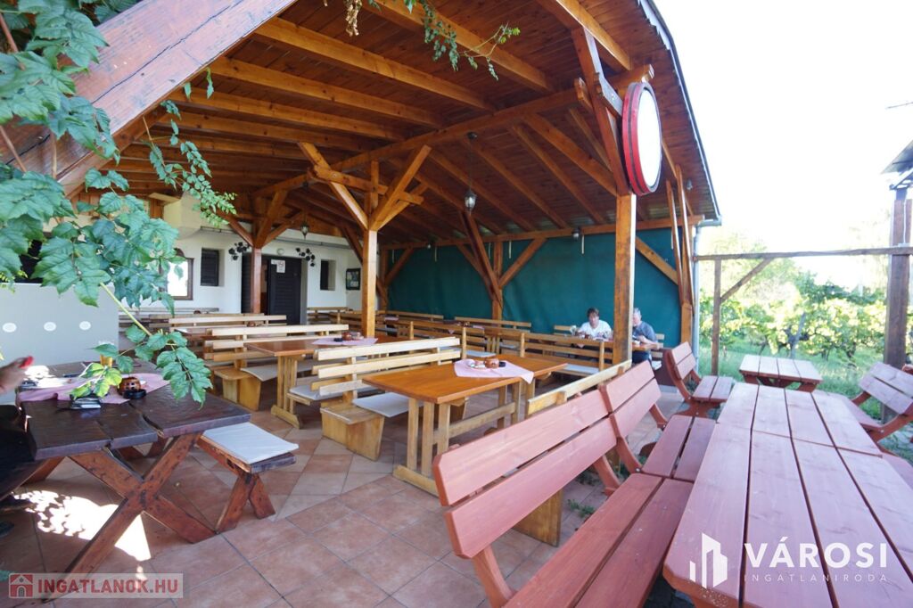 Az ingatlan átlagos állapotú, beton alappal és tégla falazattal bír, ipari árammal, villany és víz közművel ellátott, így egy kis kreativitással és befektetéssel könnyen alakítható az Ön igényei szerint. A jelenleg szezonálisan működő egység belső tere és fedett, illetve nyitott grillterasza 120 fő vendég befogadására alkalmas. Konyhájában pb palackkal működő ipari gáztűzhely, ipari mosogatógép, saválló hűtött pult, zöldség és hús előkészítő van. A kertben található egy fedett, kerti grillterasz, kemencével, grillsütővel, mely ideális helyszínt biztosíthat különféle rendezvényeknek vagy akár bővíthető is további szolgáltatásokkal. Jelenleg a hét több napján is szerveznek borkóstolókat, melyre a karosi "városnéző kisvonat" szállítja a vendégeket.