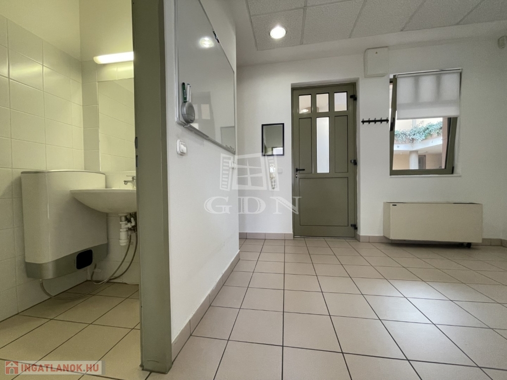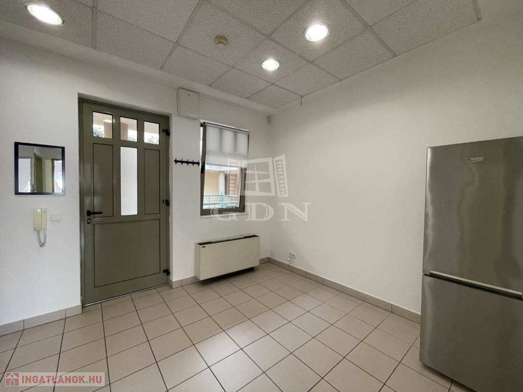 BL-001576. Belvárosban, társasházban 3. emeleti, 47nm-es, 1 szoba, konyha, előtér, fürdő, zuhanyzó elosztású, klimatizált, üres, de teljesen gépesített (hűtő, mosógép, mosogatógép, sütő, mikró) lakás, vagy irodai használatra, hosszútávra kiadó. Az épület akadálymentesített és lifttel ellátott. Központi fűtés és hűtés van, egyedi mérőkkel, a főzés villany főzőlapról történik. Az ablakokon sötétítő roló található. Parkolni az épület előtt, mögött illetve a közeli parkolóházban lehet. Az épületben 12 órás portaszolgálat működik. A lakás kialakításából és jellegéből fakadóan 1-2 ember számára biztosít kényelmes lakhatást vagy több főnek irodai használatot. A bérleti díjról számlát ad a tulajdonos (magánszemély), hosszútávú, biztonságos albérlet