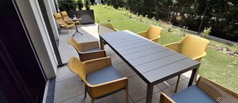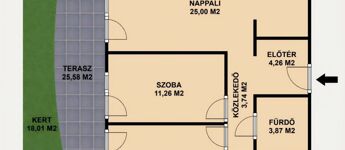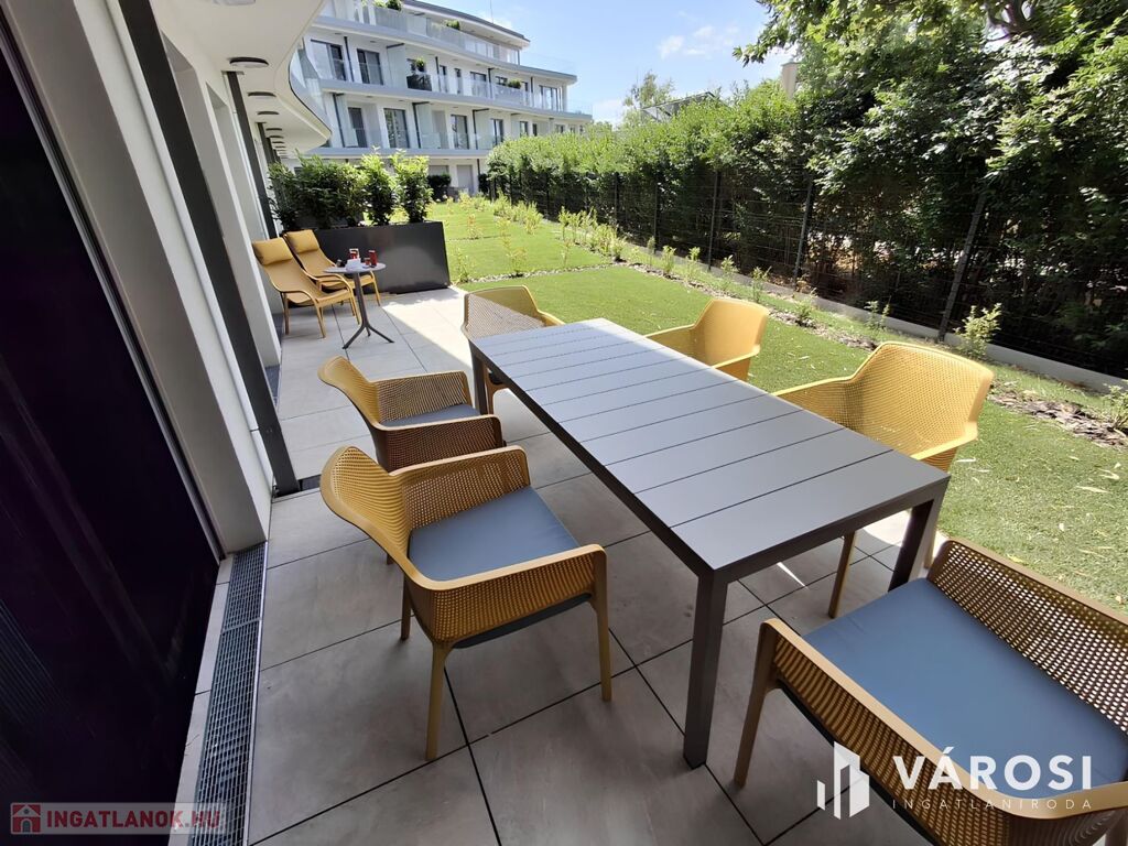 - Saját privát kertrész 43,59 m2, melyből: terasz: 25,58 m2 – tágas, ideális családi vacsorákhoz, kert: 18,01 m2.