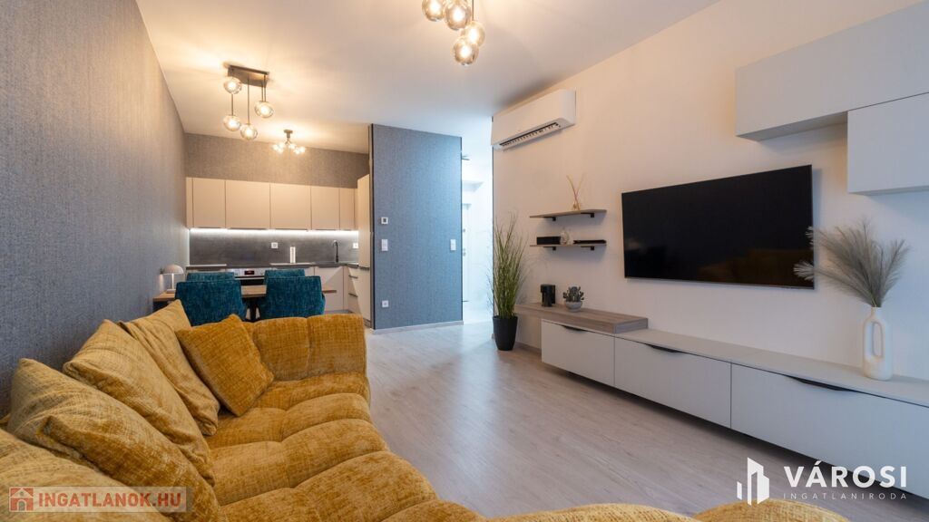 - Ideális elosztás: Az amerikai konyhás nappali, 2 szoba, 2 fürdőszoba kényelmes életteret nyújt családoknak vagy vendégek fogadására is.