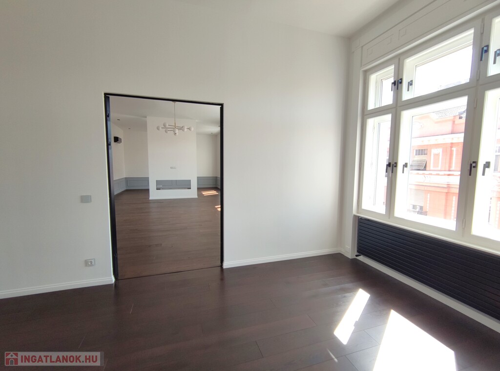 Art deco stílust követő, igényes lakásfelújítás. Nappali, dolgozó + étkező konyha beépített gépekkel + 2 gardróbszoba + 4 hálószoba + 3 fürdőszoba. 3 rétegű ablakok elektromos redőnyökkel.