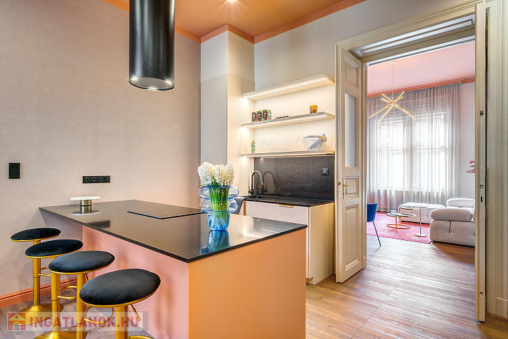 Eladó egy exkluzív, teljes körűen felújított lakás a Palotanegyed egyik elegáns, liftes társasházának magas emeletén.