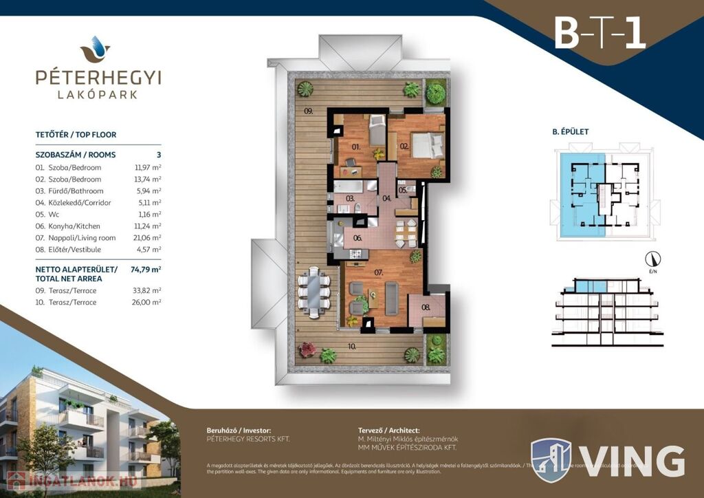 Alapterülete 73 m2 + 67 m2 terasz.