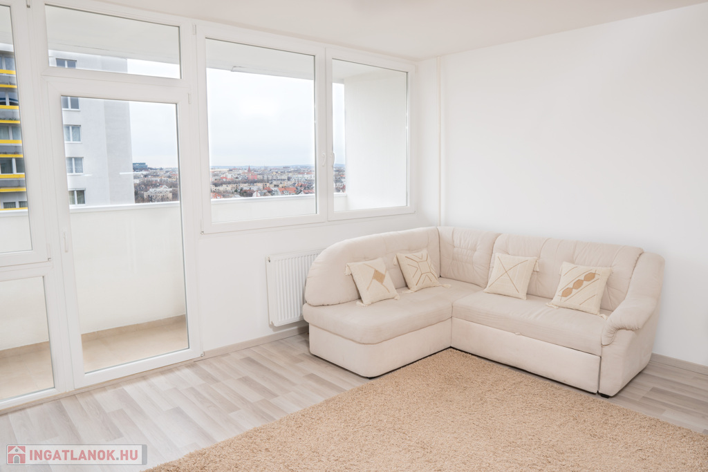 A lakás kiváló elhelyezkedésű, 45 m²-es, csúsztatott zsalus épület 12. emeletén található.
