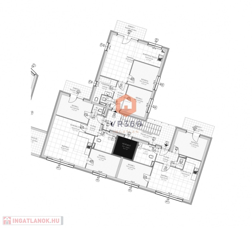 -hűtés: Fan-Coll, minden lakás tartalmazza , hőszivattyúról üzemel.