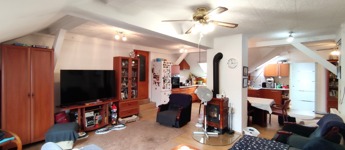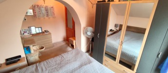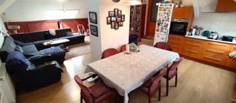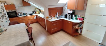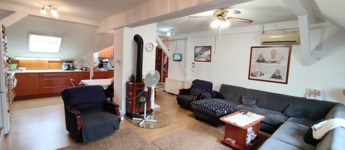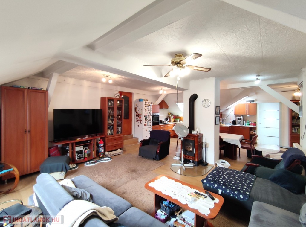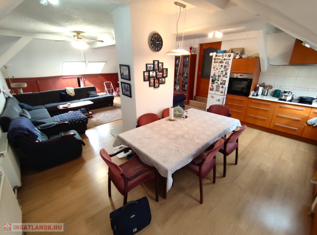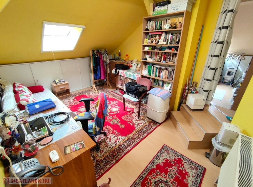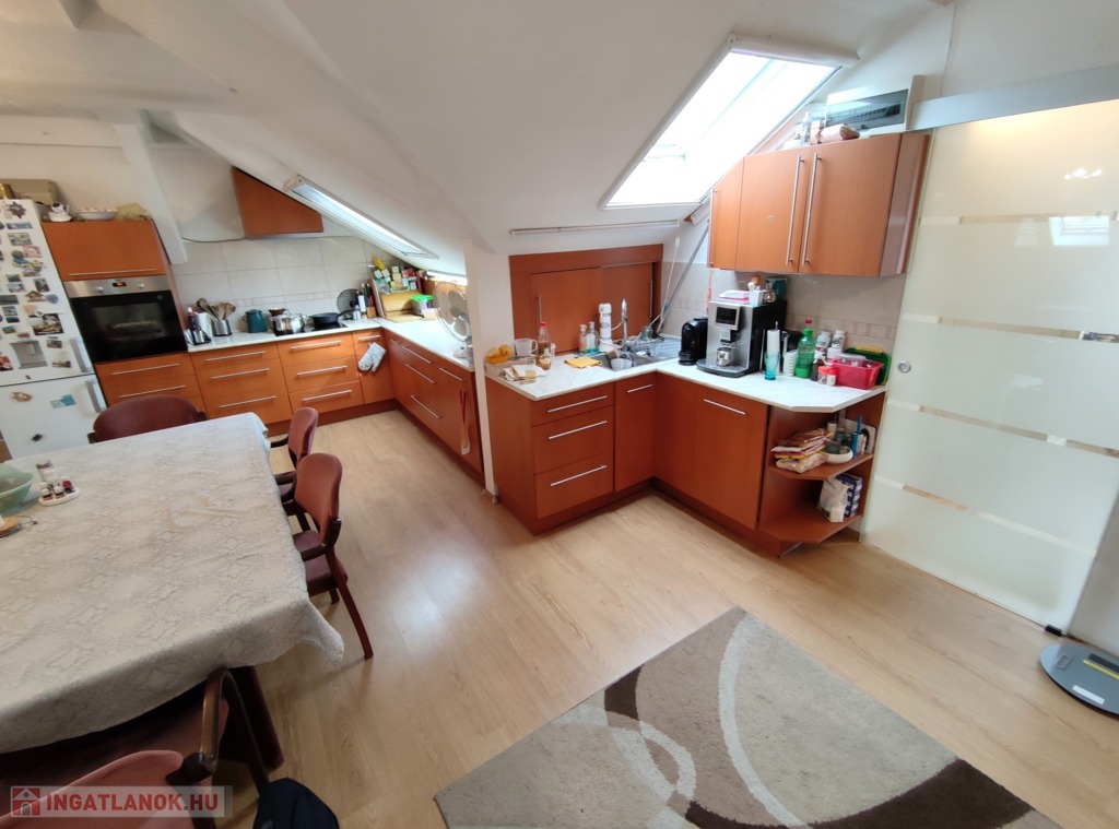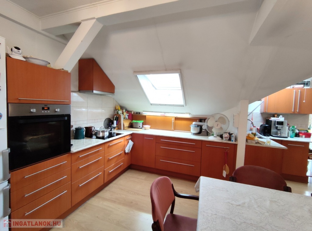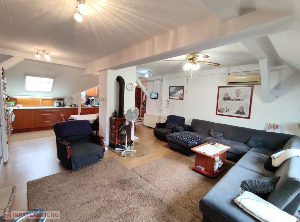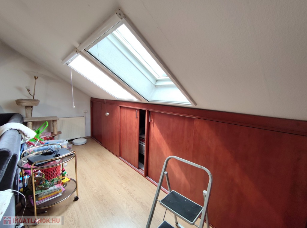 Az tetőtéri lakás 2017-ben lett kialakítva, szép beltéri és kültéri nyílászárókkal, gépesített konyhával, új kádas és zuhanyzós fürdővel, parkettával, kandallóval és 2 db hűtő-fűtő klímával. Itt minden nyílászáró modern műanyag kialakítású.