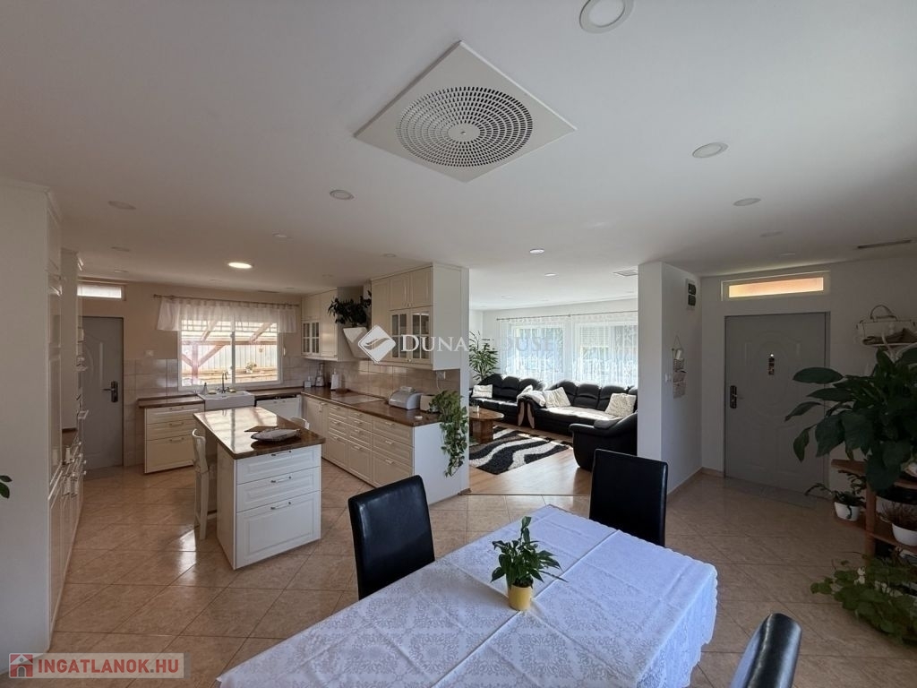 A komfortot ipari légcsatornás klíma biztosítja, mely fűt, hűt, légcserél és párát szabályoz. A fűtés kombi cirkóval történik, radiátorokkal és padlófűtéssel. A 10 kW-os szaldóelszámolású napelemrendszer jelentősen túlteljesíti az energiaigényt, így a ház rezsije rendkívül kedvező: víz, gáz, csatorna és szemétdíj együtt mindössze 15 ezer Ft/hó.