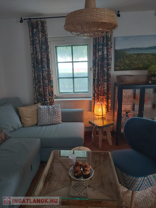 • A nappaliból gyönyörű balatoni látkép tárul elénk