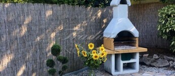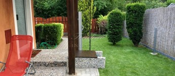 A gyönyörűen karbantartott, parkosított 311 m2-es, 40-50 éves fákkal, virágokkal, vakondhálóval, automata öntözőrendszerrel, robotfűnyíróval rendelkező telken a ház mellett egy 6 m2-es kerti tároló, grillező, valamint egy térkövezett rész is helyet kapott, ami ideális medence, vagy jakuzzi elhelyezése. A térkövezett gépkocsibeálló az előkertben található.