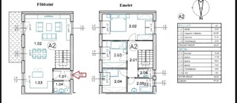 • Földszint: Tágas, napfényes amerikai konyhás nappali étkezővel, valamint egy vendég mosdó-WC.