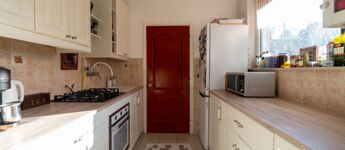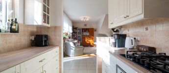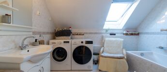 A három éve megújított, modern konyha gáz főzőlappal, elektromos sütővel és beépített mosogatógéppel felszerelt. A fürdőszobában a mosógép és a szárítógép is kényelmesen elfér. A melegvíz-ellátást és a fűtést gázkazán biztosítja.