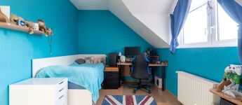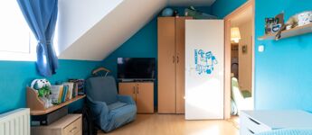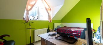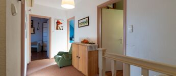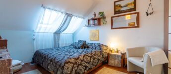 Az emeleten három hálószoba, egy káddal felszerelt fürdőszoba, külön WC, gardrób és közlekedő kapott helyet, így a ház akár nagyobb család számára is kényelmesen élhető.