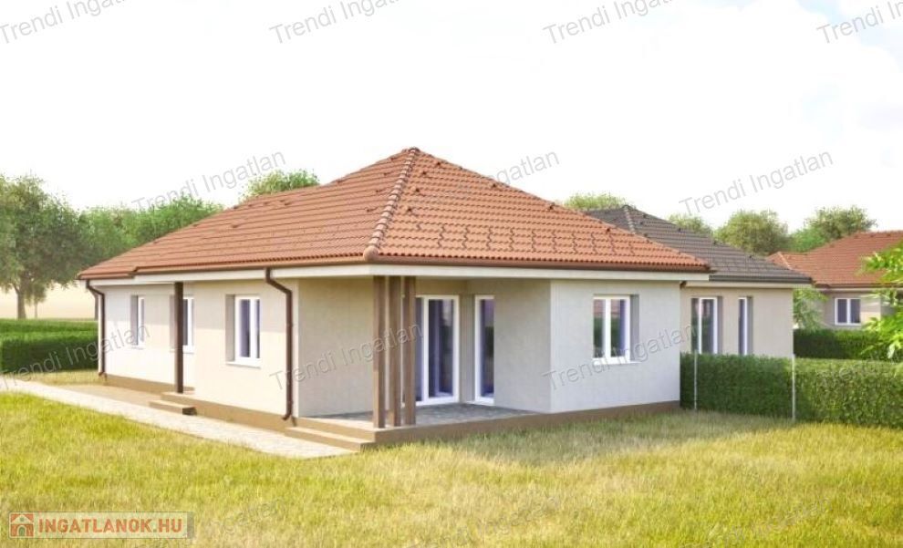 A remek elosztású házban amerikai konyhás nappali, 3 szoba, fürdőszoba, tároló, külön WC, előtér, közlekedő található. Nappaliból 10,88 nm-es terasz nyílik.