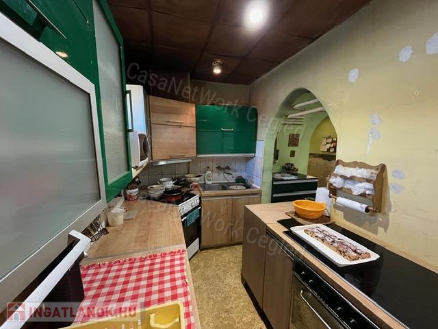 elhelyezkedő zártkertet. Az épület 117 m2 -es, elosztása: nappali, konyha, három szoba és kettő fürdőszoba, spájz, kazánház, előtér, folyósó.