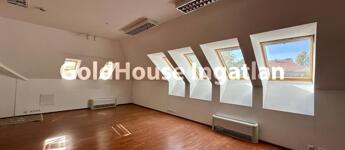 A második emelet és a tetőtér együtt több mint 250 m²-t tesz ki, amely kedvezményesen, 2500 € + áfa összegért is bérbe vehető.